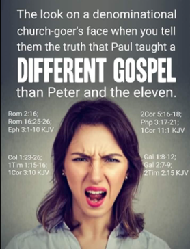 Once again, the claim that Paul taught a different gospel than Peter and other 11 apostles. It’s true. I saw a mem in a Facebook group that not only made the announcement, it provided a long list of passages from the Bible! Here’s the meme: