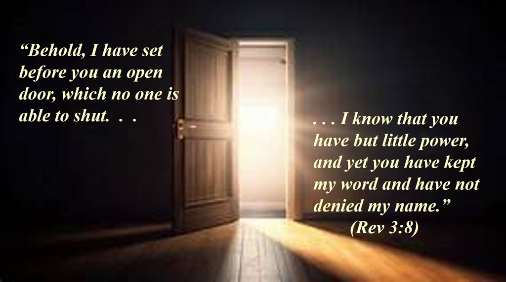 “‘I know your works. Behold, I have set before you an open door, which no one is able to shut.’”(Rev 3:8)